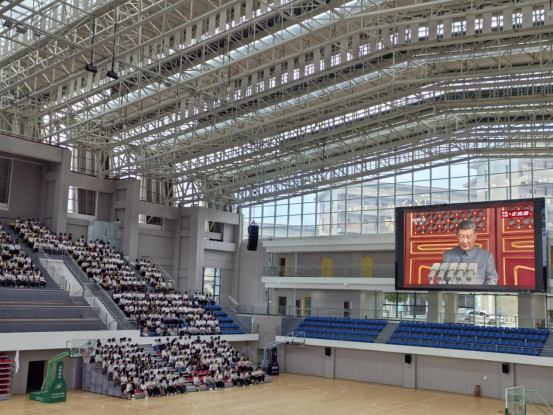 9月3日上午,纪念中国人民抗日战争暨世界反法西斯战争胜利80周年大会在北京天安门广场隆重举行。yl8cc永利官网党委组织全体专兼职辅导员和学生在花溪校区北体育馆集中收看了大会直播。